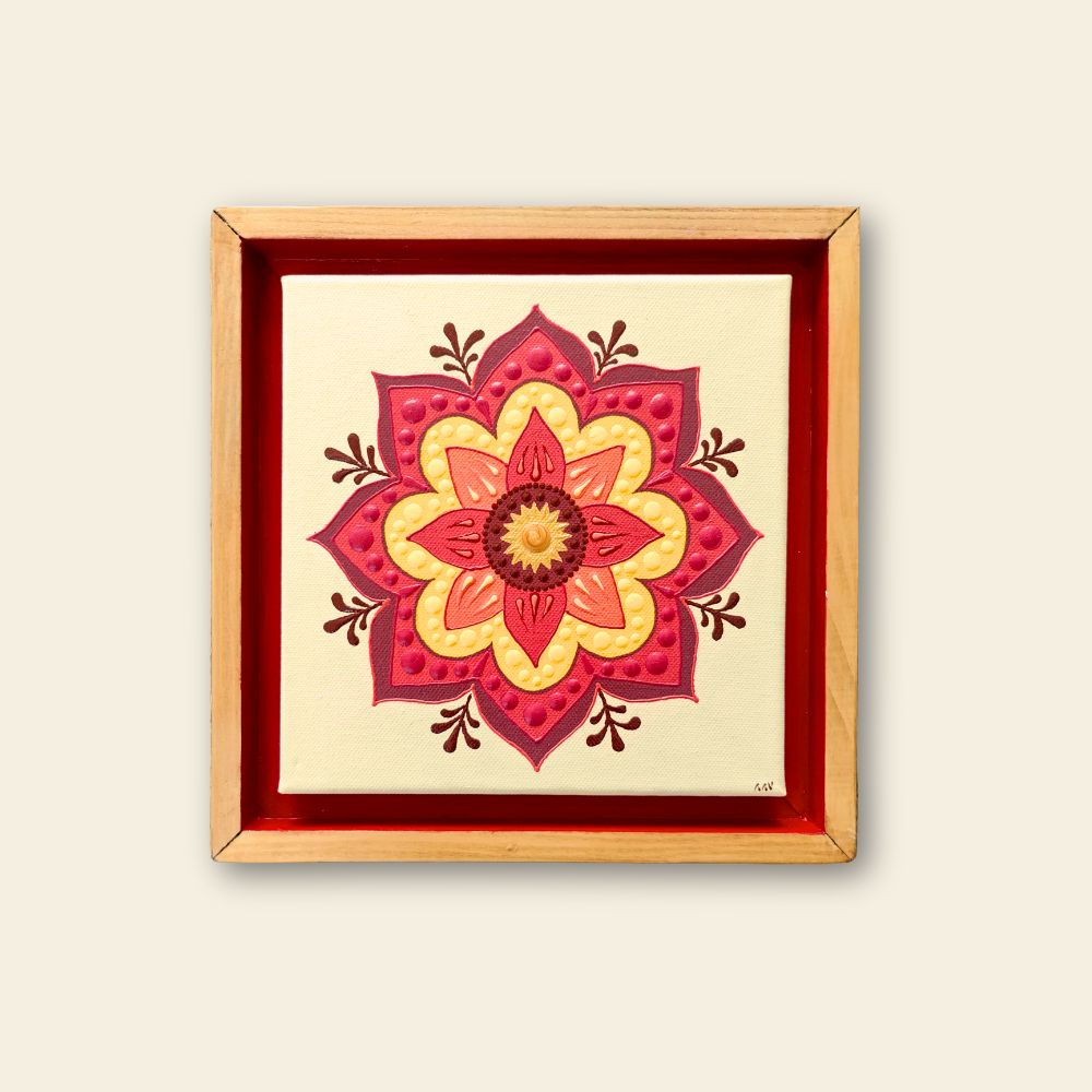 "Je cherchais en effet depuis quelque temps un petit mandala, joli et discret. Le hasard m'a conduite vers votre site et j'ai trouvé votre travail très intéressant. Je n'ai pas été déçue. Bravo pour votre talent. C'est exactement ce qu'il me fallait et ce qui est extraordinaire, c'est que, même si le mandala est petit et discret, ON NE VOIT QUE LUI, pourtant au milieu de bien d'autres choses chez moi.  J'ai également apprécié le petit mot qui y était joint. Si j'ai un autre achat à effectuer, je n'hésiterai pas à revenir vers vous."