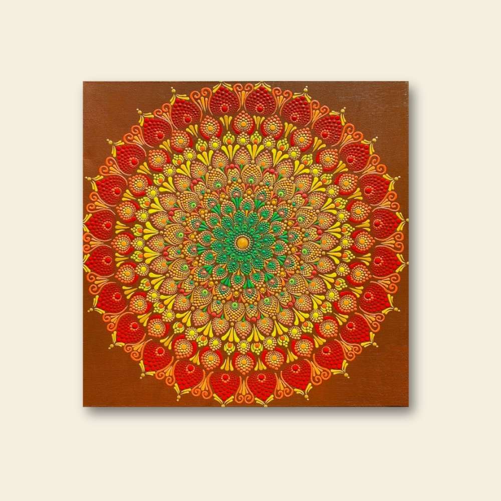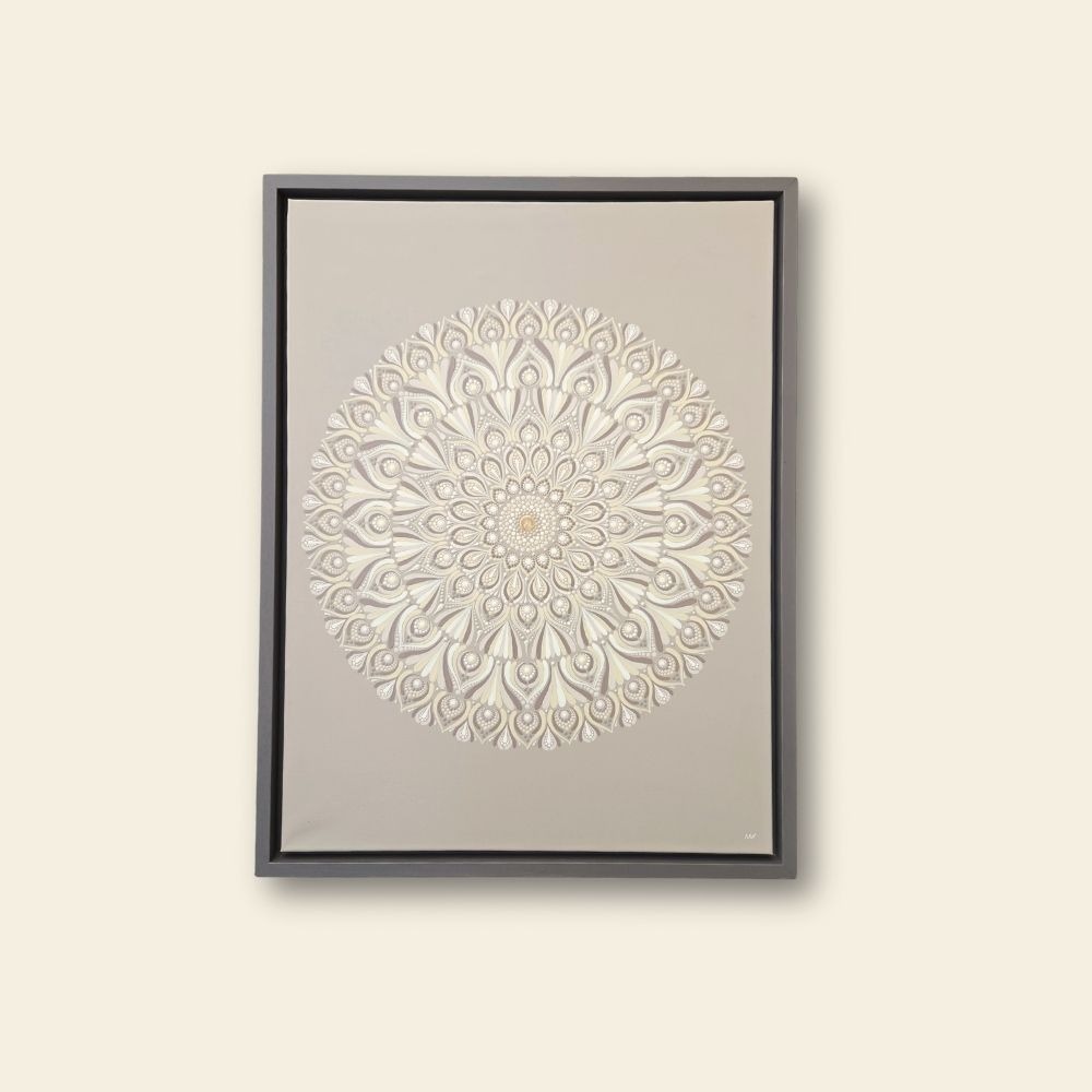 Chaque toile est le fruit d’une canalisation profonde et d’une précision technique absolue. À travers la structure sacrée du mandala, la finesse du point rencontre la puissance de l’intention pour offrir une œuvre d’exception qui ne se contente pas d’être vue, mais qui se ressent.