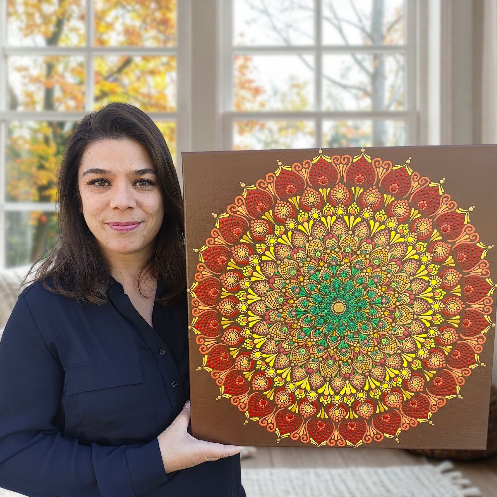 ✨ Matière : Acrylique travaillée en relief. Chaque point est déposé avec une présence attentive et une intention posée.