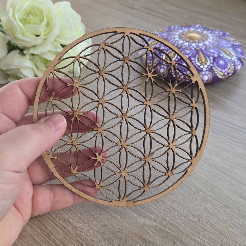 Fleur de Vie – Sceau de Géométrie Sacrée (Socle Bois)